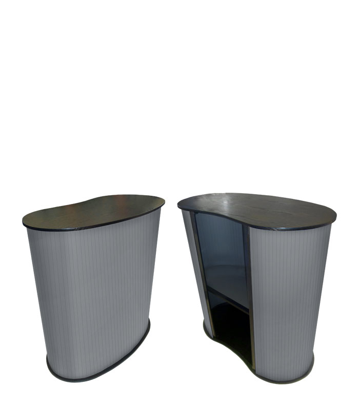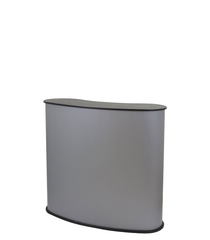 El Mostrador Publicitario Curvo es un soporte publicitario para stands, ferias o promociones en el punto de venta. Su estructura está fabricada en madera y plástico y el anclaje de todos los elementos es a través de un sistema de velcro. Por este motivo su montaje es muy fácil, en menos de 5 minutos puedes disponer de un robusto mostrador promocional. El mostrador Curvo tiene 1 estante de plástico en el interior, por lo que las tarjetas de negocio y folletos se pueden guardar para que la exhibición siempre parezca limpia y organizada. Este soporte publicitario es excelente para ferias y eventos promocionales en tiendas o presentaciones comerciales.