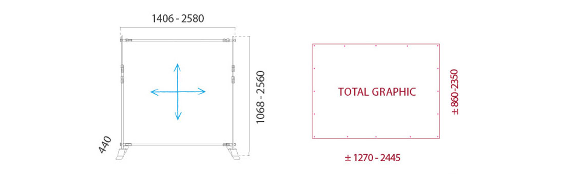 El Photocall Fijo Extensible y Ajustable cuenta con una estructura de acero en color negro lacado. Este Banner Publicitario Extensible es portátil lo que hace que sea ideal para usar en una gran variedad de eventos promocionales, tales como una ferias comerciales, evento de medios, exposición comercial o incluso como solución para una sesión de fotos. Cada tubo de la estructura del Banner extensible está diseñado para que el uso del telescópico sea fácil, rápido y ajustable a la gráfica, esto permite que el uso de diferentes gráficas en función de su ancho y alturas. El photocall Fijo Extensible es un Stand rápido de ensamblar y fácil de transportar, ideal para cualquier evento promocional que su negocio requiera.